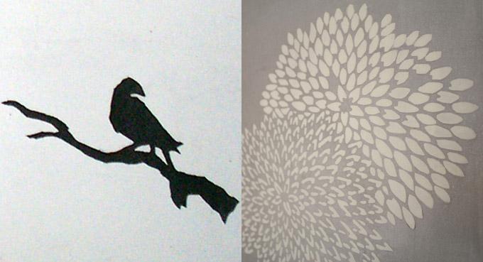 Motiv: Vogel / Technik: Intarsie – Motiv: Chrysantheme / Technik: Relief